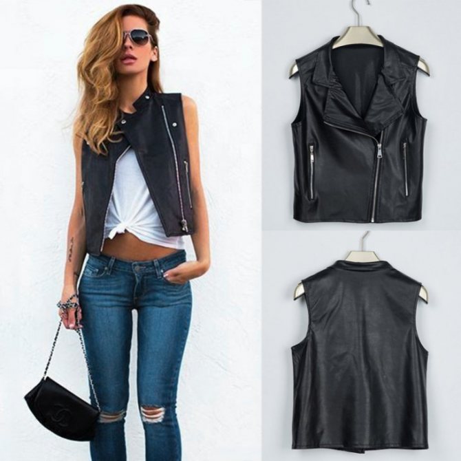 Укороченные жилеты совсем не отстают от своих длинных «собратьев» ни в популярности, ни в красоте. Эти модели сочетают с модными в текущем сезоне кожаными брюками и шортами, женственными юбками и платьями.