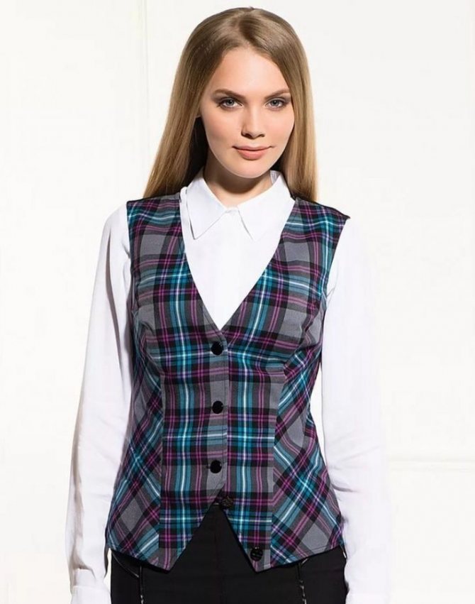 Женский костюмный жилет не относится к функциональным предметам гардероба и выполняет исключительно эстетическую функцию. С его помощью можно сделать более выразительной линию талии, подчеркнуть достоинства фигуры и оживить однотонный лаконичный образ.
