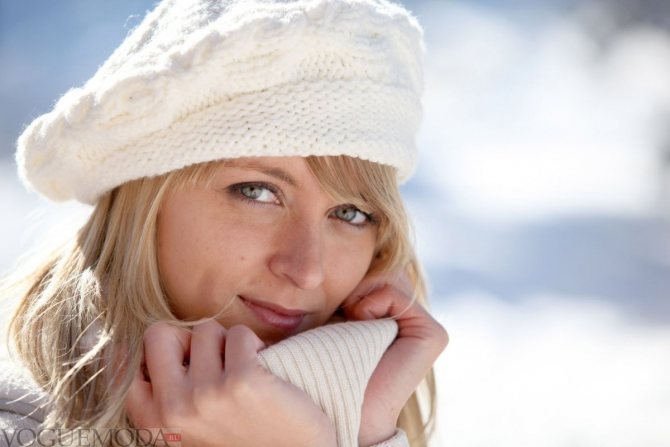 Черный женский зимний головной убор, несмотря на повсеместную распространенность, неприятно подчеркивает красноту от мороза и добавляет несколько лет. У женщин в возрасте 45-50 лет они сделают морщинки более резкими.