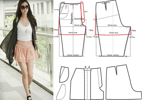 Внимание! Для базовой выкройки можно использовать шорты. Их нужно осторожно разложить на тонкой бумаге, обвести по линиям мелом, вырезать и применить как выкройку.