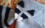 Шарф связан из остатков разных ниток. Для детей вполне подходящий вариант. Мышки могут быть белые, серые, черные или даже полосатые. Тут все зависит от вашей фантазии и выбора цвета. Идея не нова, подобные шарфы – кошки, тигры и другие вяжут чаще всего крючком. Можно взять схему прихватки, аппликации, связать 6-10 одинаковых элементов и соединить в одну линию. Ваш шарфик готов.