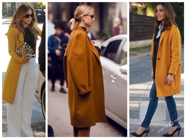 Терракотовый цвет идеально гармонирует с одеждой коричневых, синих и золотых оттенков. Очень стильно яркое терракотовое пальто смотрится с белыми аксессуарами – кожаным ремнем, сумкой, вязаным шарфом или шапочкой.