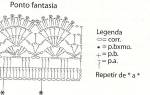 - 1, 5, 7, 9 ряды вяжут так – 1 кр, 1 изн., потом повторяющийся рисунок – 4 лиц., 1 изнан., последняя будет кромочной;