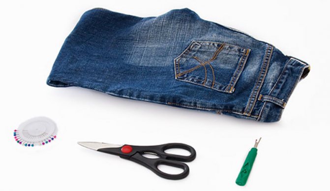 Обрежьте штаны на уровне колен. Распарите внутренние швы. Боковые швы трогать не нужно. Для распаривания лучше всего пользоваться специальным инструментом.