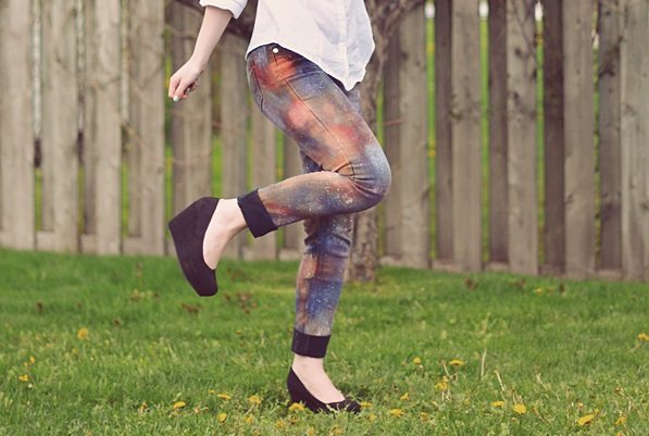 Несколько баллонов с краской, блёстки и любовь к космосу — основные ингредиенты для превращения обычных джинсов в галактические. Инструкция .