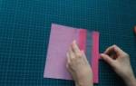 На бумаге чертим при помощи карандаша и линейки прямоугольник: нижняя сторона – 27 см., боковая – 30 см. Вырезаем. Сгибаем прямоугольник посередине. Обрезаем верхние острые углы.