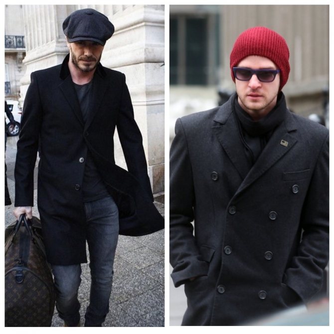 - Вязаная или трикотажная шапка тоже подойдет под пальто, все больше и больше мужчин выбирает такое сочетание. На фото ниже вы можете видеть, что смотрится оно вполне гармонично.