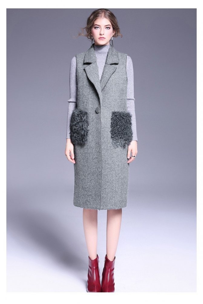 С чем носить удлиненный жилет без рукавов с меховыми карманами