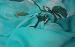 Если шифон выступает в качестве покровного материала, то сверху его дополнительно покрывают блестками, вышивкой или стразами. Популярными узорами и принтами считаются горошек и цветы. Из черного гладкого шифона шьют вставки для белья, пеньюары. Светлые оттенки подходят для летней одежды, платков и палантинов.
