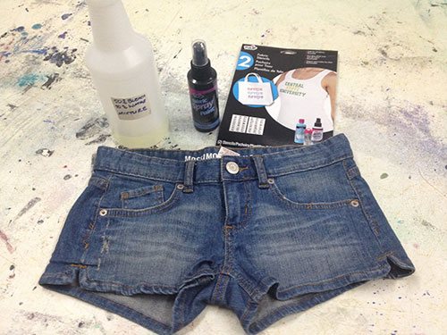 Бумажные полотенца кладем внутрь шортов для того, чтобы в процессе окрашивания краска не перевелась на другую сторону.