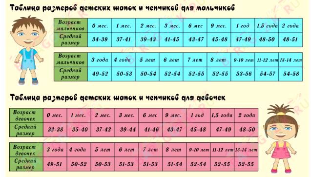 Таблица соответствия возраста, высоты шапки и диаметра донышка
