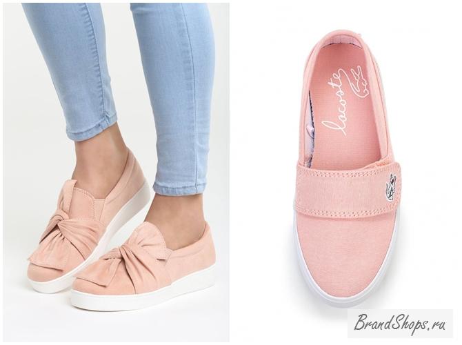 Розовые слипоны – это истинно женские модели. Могут быть с декоративными бантами, пряжками или другими украшениями.