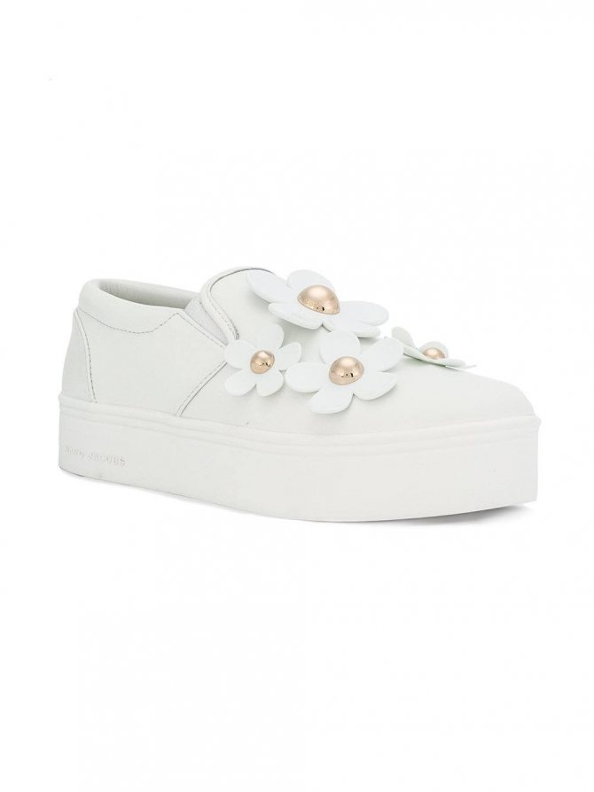 Эффект невесты преследует многих девушек. Поэтому они выбирают белые слипоны для своих образов. С такой обувью нужно проявлять особую деликатность, ведь светлые оттенки входят в категорию доминирующих.