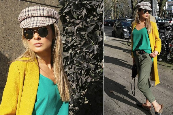 Прекрасно сочетаются разные стили кепи с пальто, драповым с запахом или оверсайз, которое можно приспустить на одно плечо. В зависимости от фасона головного убора образ получится игривый, если одеть «хулиганку» или «Гаврош», и более строгий с жокейкой и конфедераткой.
