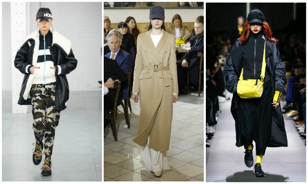Есть ещё вариации со способом надеть головной убор. Посмотрев на фото модных показов осень-2018, можно заметить, как дизайнеры задают настроение образу по-разному надевая кепки на модели.