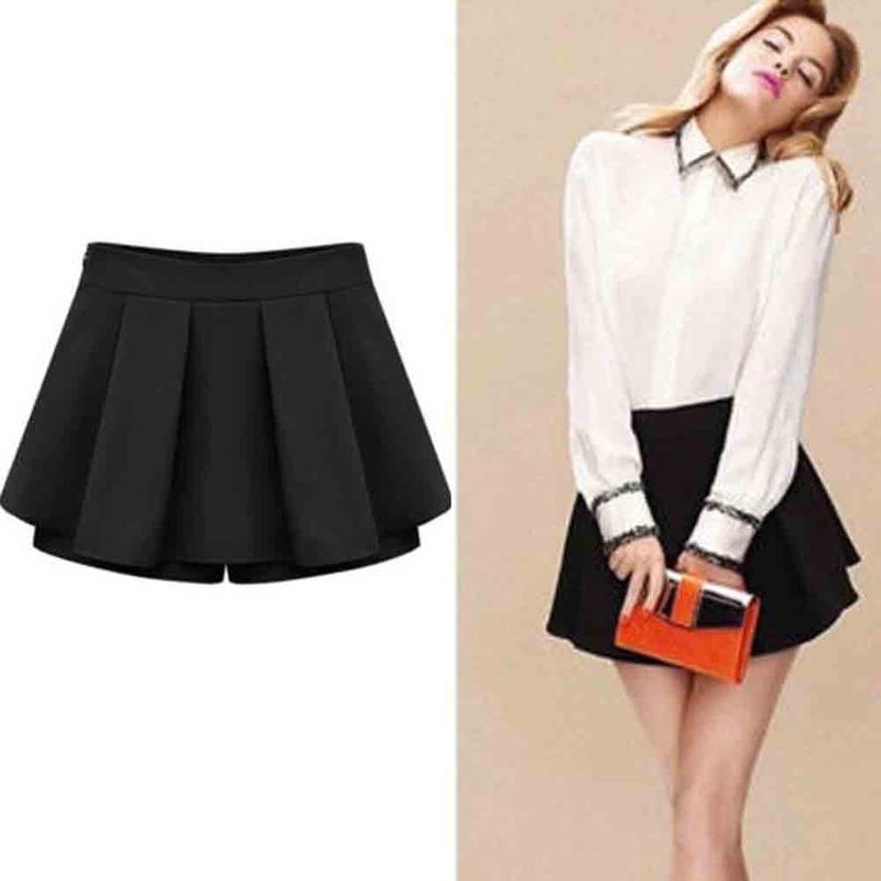 Высокие черные шорты могут иметь настолько свободный и летящий покрой, что внешне их сложно отличить от юбки. Такие вещи очень удобны, ведь в них не стоит беспокоиться о том, что подол задерётся и обнажит интимные части тела. Черные юбка-шорты могут изготавливаться из разных материалов и относиться не только к casual-стилю, но даже к деловому или вечернему направлению.