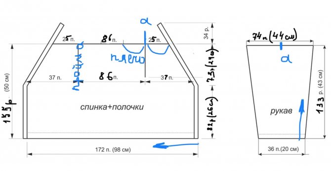 Высота реглана спинки = 24 см (41 р); 25 см (43 р); 26 (44); 27 (46); 28 (48 р).