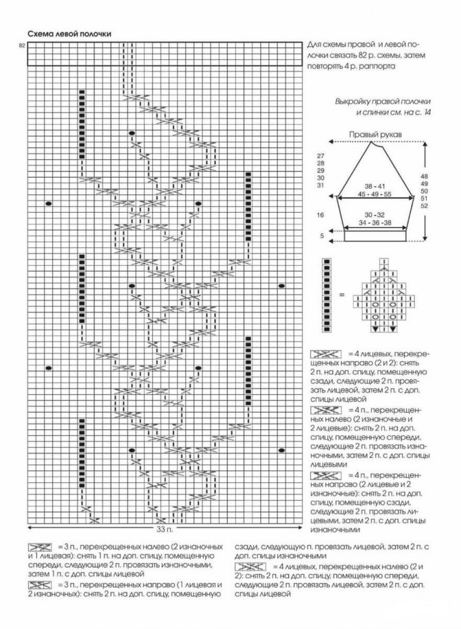 83-й р: кром., 6 п. планки, Мар., 1 лиц, переснять изн. с накидом, 1 лиц, переснять изн. с накидом, 2 п вместе лиц с наклоном вправо от планки, затем продолжить полупатентной рез., не доходя 6 п. до Мар. – 2 п вм лиц. с наклоном влево, переснять изн. с нак., 1 лиц, переснять изн с нак, 1 лиц, Мар, 7 лиц. планки. Схема убавок: